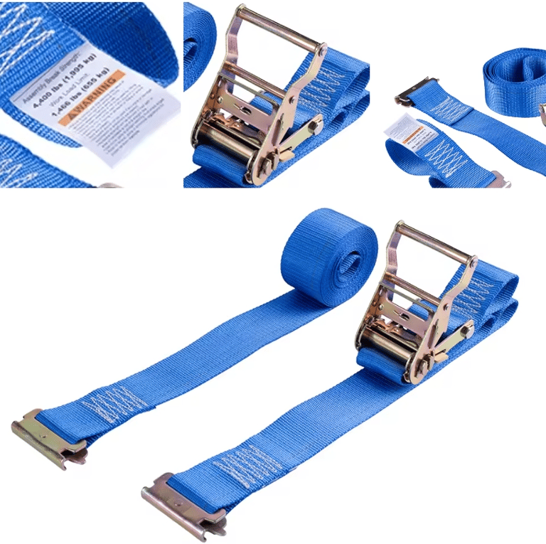 We also make 3-point wheel straps with E-track fittings, a combination E-track/L-track ratchet strap, pallet jack strap, driver assist strap with handle, rope tie-off straps, and more. If you need a custom E-track strap, we can make it for you.