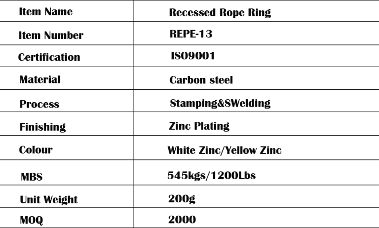 The recessed rope ring anchors are designed to provide a secure and versatile anchoring solution ideal for a variety of applications. It is able to withstand heavy loads and harsh environmental conditions. This makes it ideal for both indoor and outdoor use, ensuring long-lasting reliability. Whether you need to secure equipment to a truck bed, trailer or even a concrete floor, our D-ring anchors can be securely installed in minutes, which makes it the perfect solution for both business and recreational use.